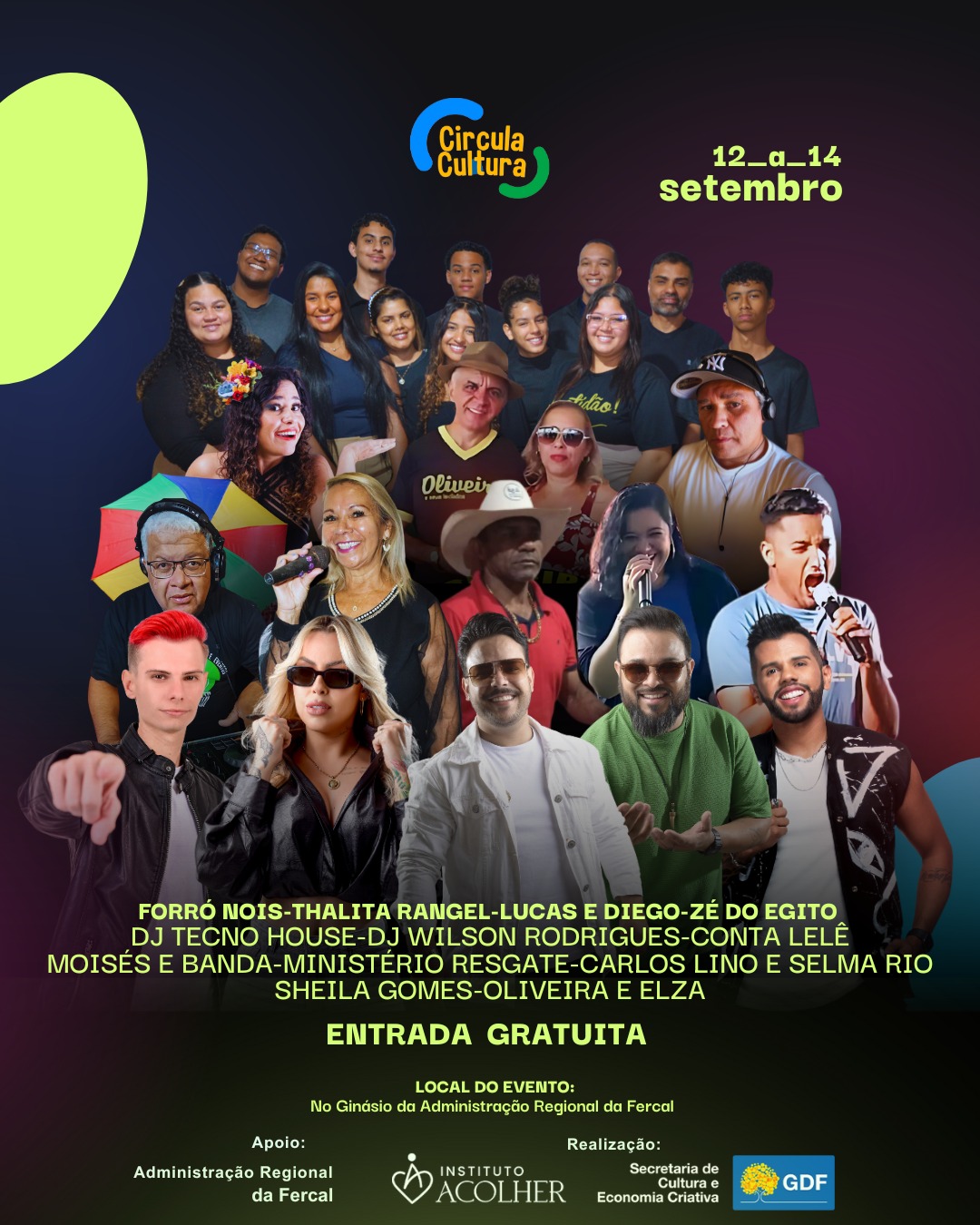No sábado (13), o projeto Circula Cultura leva atrações artísticas para todas as idades, valorizando talentos locais e fortalecendo a identidade cultural da região. Haverá ainda passeio ciclístico, encontro de carros antigos, brinquedos, pedal kart e praça gastronômica. À noite, shows com Carlos Lino & Selma Rios, Thalita Rangel, Sheila Gomes e Zé do Egito encerram as atividades.