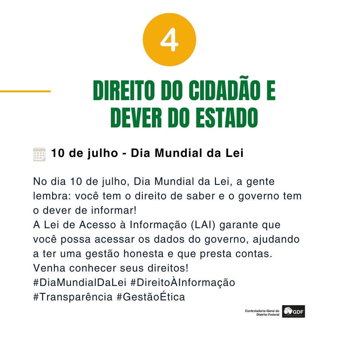 No dia 10 de julho, Dia Mundial da Lei, a gente lembra: você tem o direito de saber e o governo tem o dever de informar!